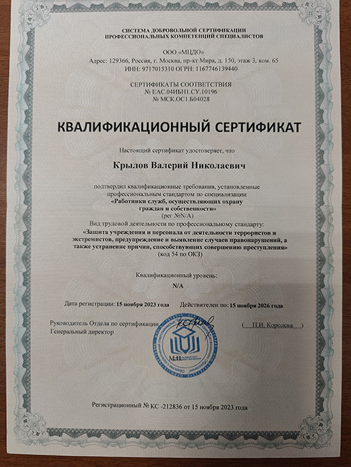 Ветеран спецподр-я МВД (майор) участник боевых действий.